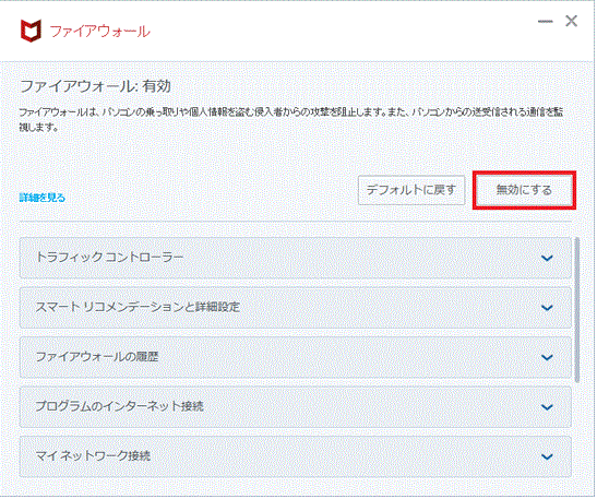 「ファイアウォール」の機能を停止 |